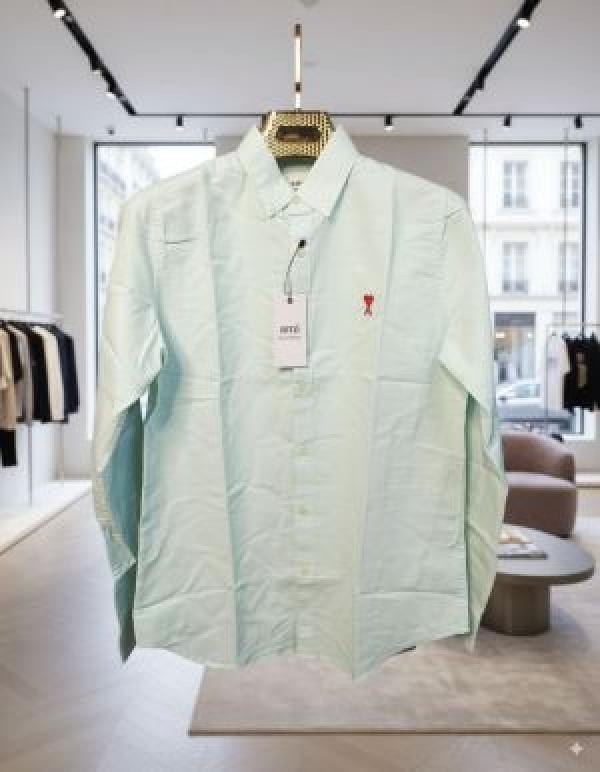 Ami Paris Green Stripes Embroidery Logo Premium Shirt (1850)