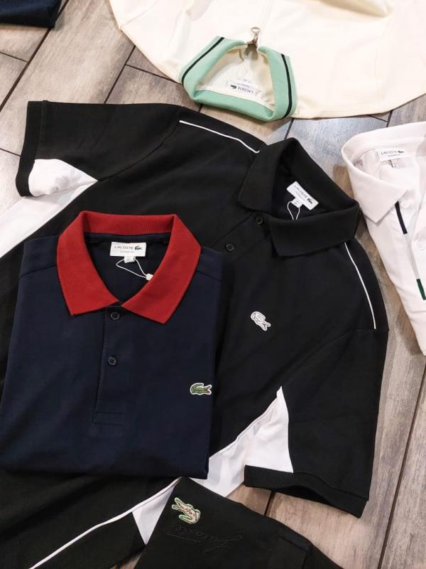 Lacost e Black Premium Cotton Lycra Pique fabric Polo Tshirt with Shoulder Design and Embroidered Logo 3384